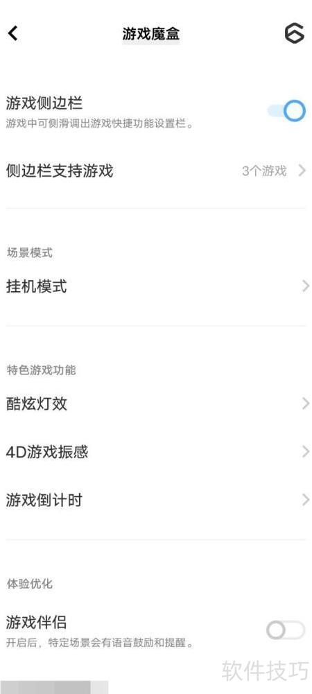 3、 在弹出的游戏魔盒界面中,点击游戏伴侣右侧的开关按钮即可开启。