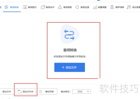 2、 点击中间添加文件按钮,选择需转换的文件或文件夹,支持多文件批量处理,操作简便高效。