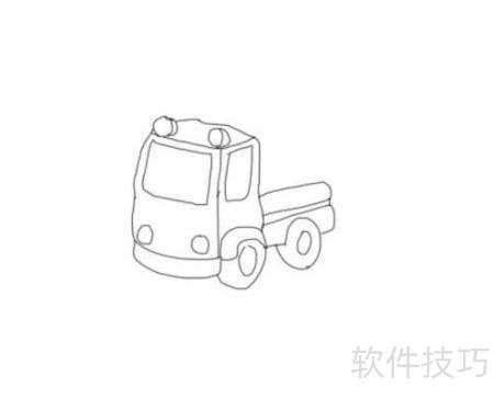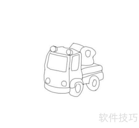 4、 以救援车后轮和车头为基础,继续绘制车身部分,具体形状参照图示完成。