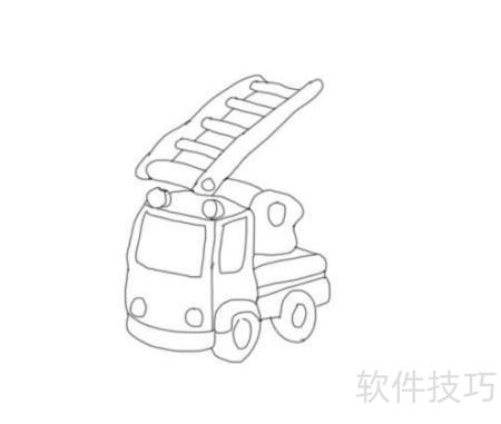 6、 在支架上方绘制救援车的梯子部分,完成整体造型,具体效果见示意图。