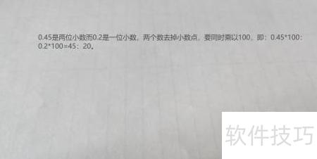 1、 0.45是两位小数,0.2是一位小数,将两数同时乘以100去掉小数点,得到45:20。
