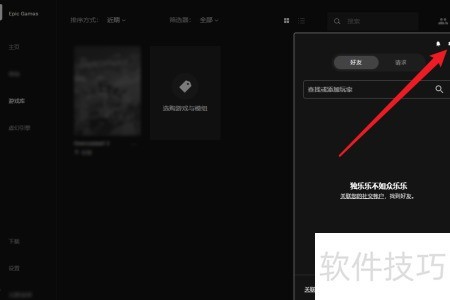 2、 打开Epic Games,点击右上角的好友图标即可。