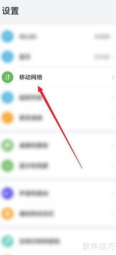 1、 进入手机设置,选择移动网络选项。