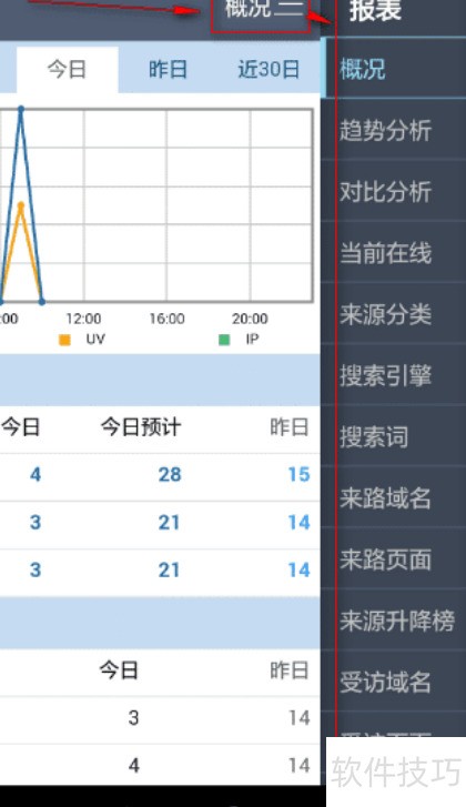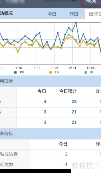 5、 点击后进入网站统计页面,可查看今日、昨日及最近30天的数据概况。用户可根据需求,选择相应的时间段进入查看具体统计信息。