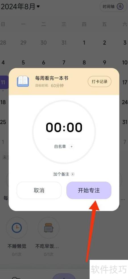 3、 进入界面后,点击开始专注图标完成打卡。