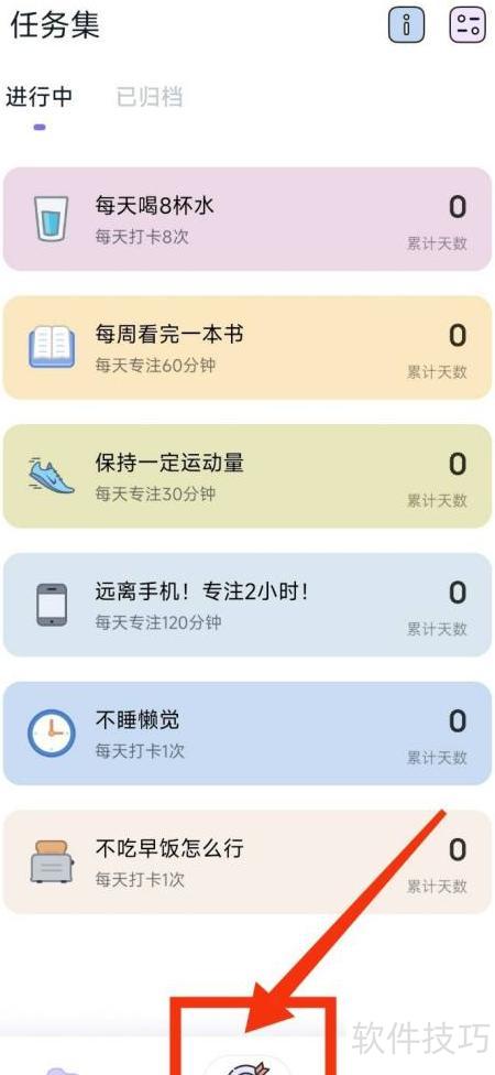 1、 打开自律打卡应用,点击目标图标开始设置。