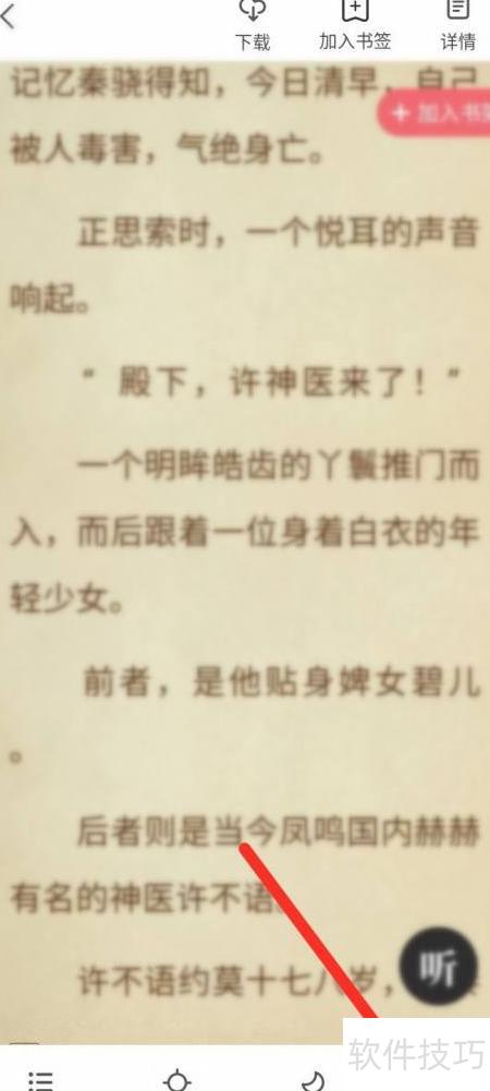 1、 进入番薯小说应用阅读界面,轻触右上方菜单按钮。