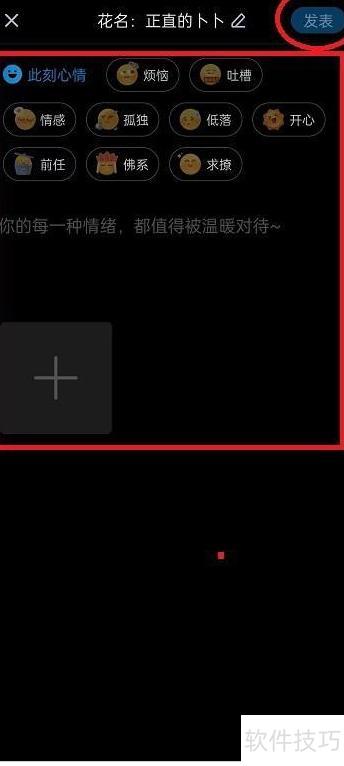 5、 跳转页面后,先填写倾诉内容,最后点击右上角发表按钮即可。