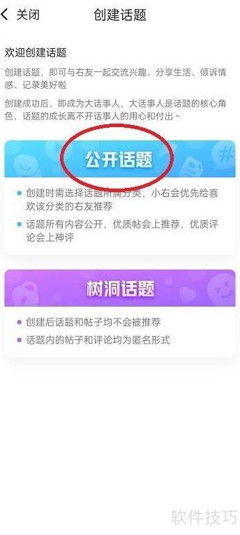 4、 跳转页面后,选择公开话题或树洞话题即可,详见图示。