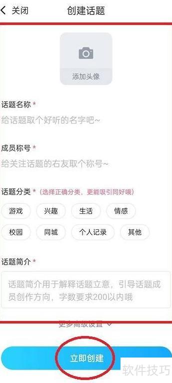 5、 跳转页面后,先填写话题信息,再点击立即创建按钮即可。