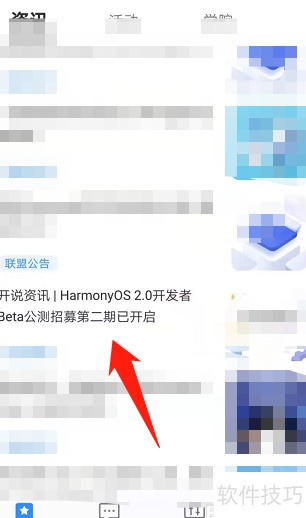 4、 进入开发者联盟首页,点击鸿蒙2.0手机开发者beta公测招募公告即可查看。