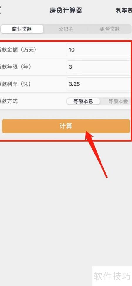 2、 在计算器中输入贷款金额,设定3年期限和3.25%利率,然后点击计算按钮。