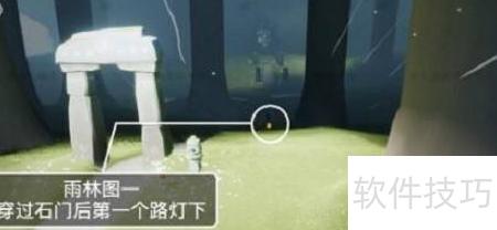 2、 进入雨林后,蜡烛位于图一石门后的首个路灯下方。