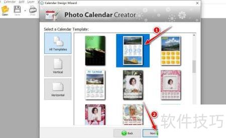 4、 挑选一个日历模板,点击下一步按钮继续操作。