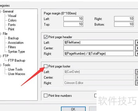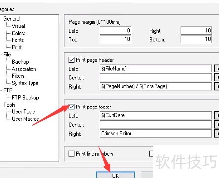 使用Crimson Editor时,若需打印页脚,可进入打印设置选项,在页面布局中找到页脚配置,根据需要输入内容并调整格式,最后保存设置即可完成打印页脚的设定。