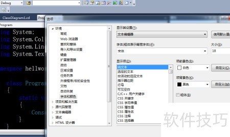3、 在Visual Studio中,进入工具菜单,选择选项,然后点击环境下的字体和颜色。在右侧设置框中找到字体下拉列表,即可看到source code pro字体选项。选中它并确认,随后就能看到代码编辑区的字体已更改,体验一下新字体带来的视觉变化吧。
