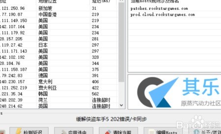 3、 选择后会显示多个IP地址,可先测试延迟,挑选响应更快的进行使用。