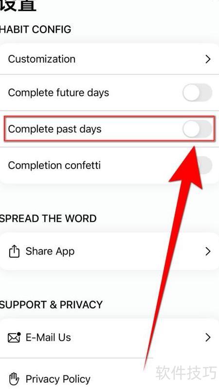 3、 Complete past days后方的圆点变成灰色,代表已成功关闭习惯追踪功能。