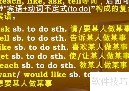 6、 ask可带双宾语,两者均为直接宾语,其中指物的宾语可由名词、代词、带疑问词的不定式或wh-从句担任。