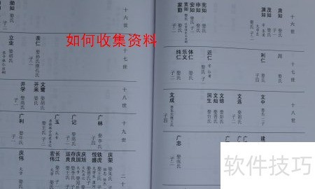 24、 收集资料时应同步整理,依据时间、渊源、辈分或事件要素等标准分类排序,确保条理清晰,便于后续查阅与分析。