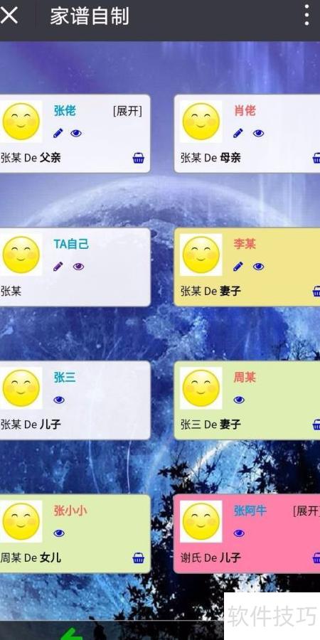 5、 若张三有多段婚姻且每段均有子女,可在家谱中为其添加多位配偶。录入子女时选择对应生母,系统将按生母颜色标记子女,确保血缘关系清晰可辨。通过色彩区分,家庭成员的归属一目了然,结构简洁明了,有效避免混淆,便于理解和查阅三代家庭脉络。