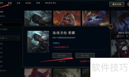 8、 挑选英雄,点击赛娜并购买