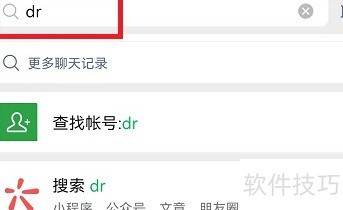 1、 在微信右上角搜索栏输入dr或dr专属空间等关键词即可进入。
