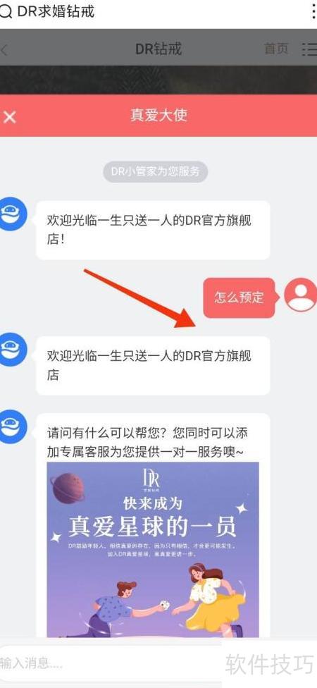 2、 点击在线咨询,发送如何预订,根据真爱大使的回复即可完成预订操作。