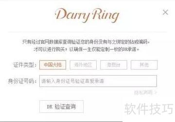 3、 验证身份证信息,选定款式与钻石4C参数,确认手寸及刻字内容后,可加入购物车或直接下单。填写资料完成验证,若系统无购买记录,即可继续购买流程。