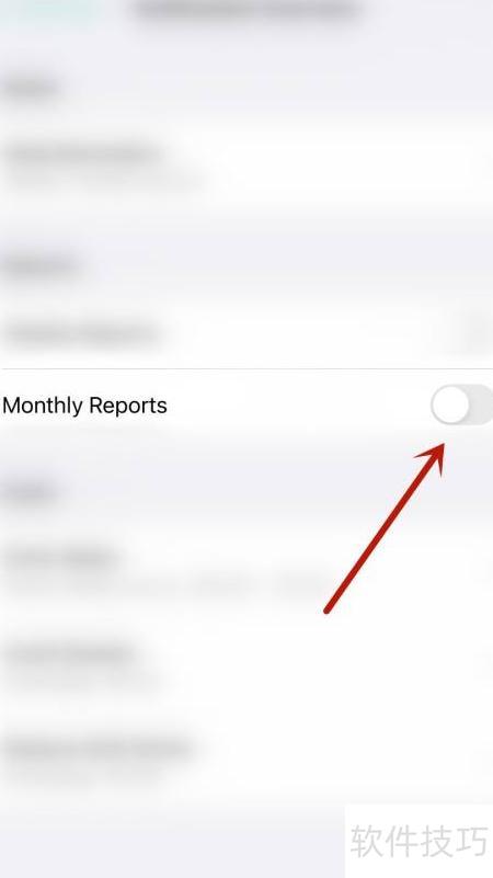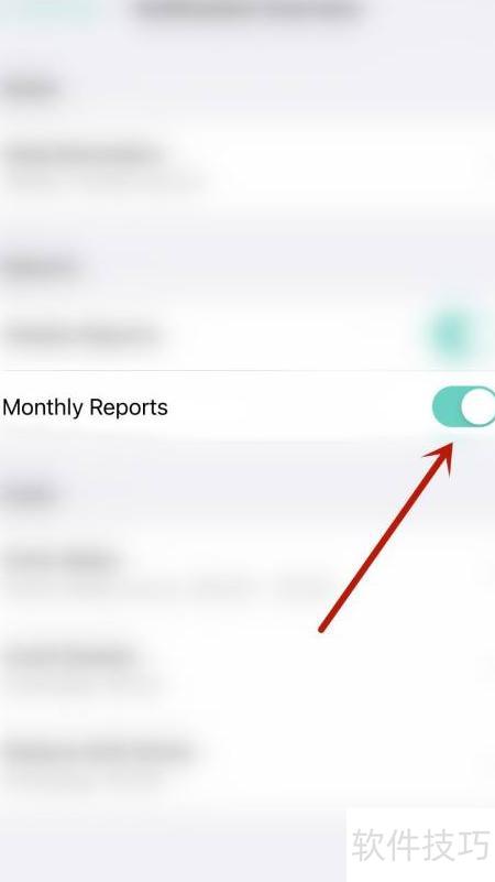 3、 在设置页面中,点击Monthly Reports选项旁的圆点图标。