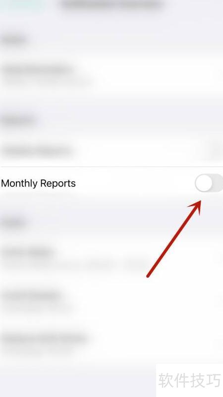 3、 在设置页面中,点击月度报告选项旁的圆点图标。