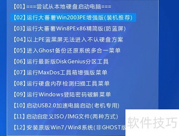 5、 将U盘启动盘插入电脑USB接口,启动并运行Win2003PE增强版系统。