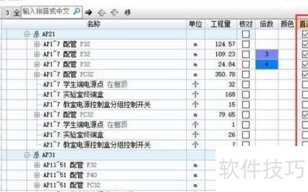 3、 启用最短路径功能后,工程量表中各项目的直连选项可单独控制每个项目的最短路径开关。