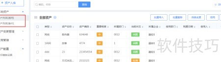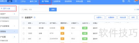 2、 进入系统后,选择资产管理中的资产入库功能,即可新增各类资产信息。