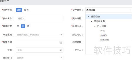 4、 根据资产属性将其归入相应的本地资产清单:若选择通用类别,保存后该资产将进入列表;若选择备件类别,保存后则自动归入列表中。