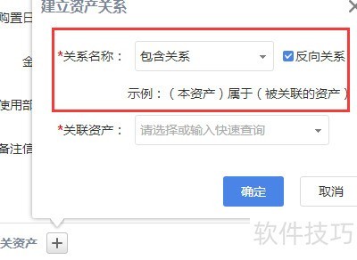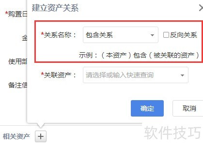 5、 资产当前状态分为闲置和在用两类,具体由入库时是否指定使用人及使用部门决定。若已指定使用人和使用部门,则状态为在用;否则视为闲置。入库时需登记相关资产信息,资产间存在包含、安装与运行等关联关系,且支持正向与反向的相互关联。