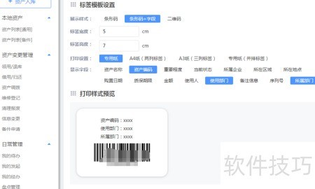 11、 从通用列表中选取一个或多个资产,点击标签打印,进入预览页面,用户可按需选择合适的标签样式进行打印。
