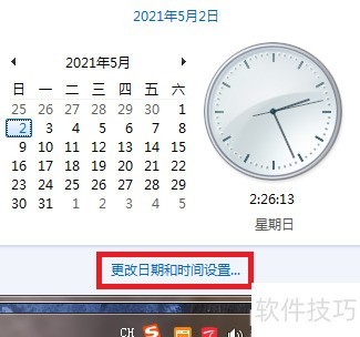1、 点击任务栏右下角的时间区域。
