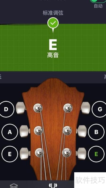 3、 音高依次为E、B、G、D、A、E,调音前先开启调音器。可使用手机下载的调音软件,也可选用市场上销售的实体调音器进行调节。