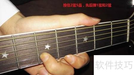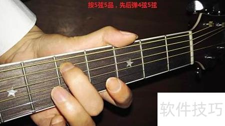 5、 按住五弦第五品,依次拨动四弦空弦与五弦,调整至两音相同为止。