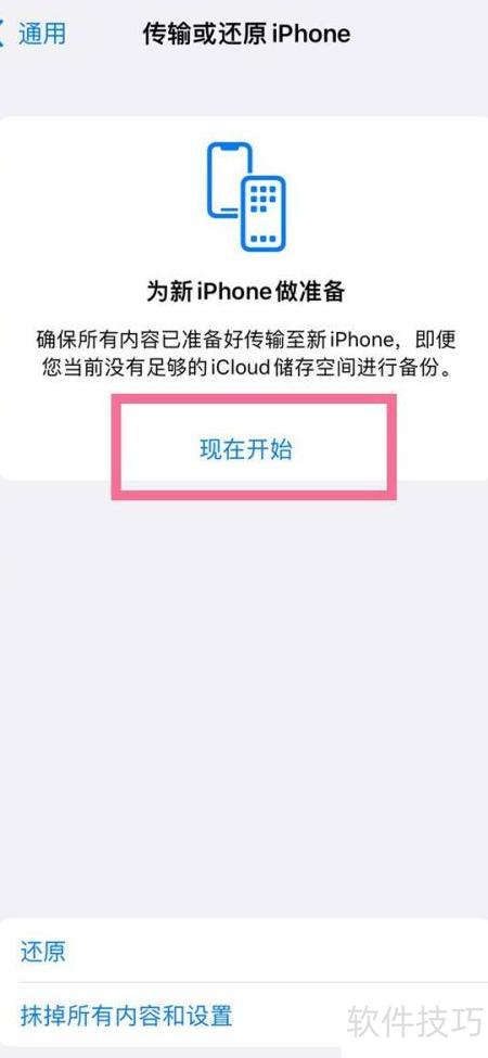 2、 点击传输或还原iPhone即可开始操作。