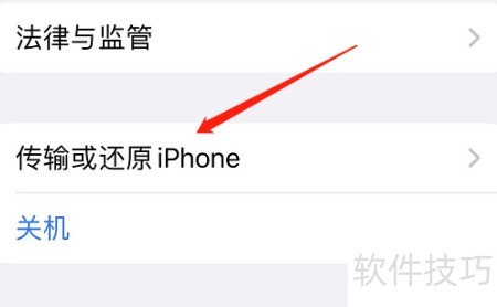 2、 进入通用设置,点击传输或恢复iPhone功能选项。