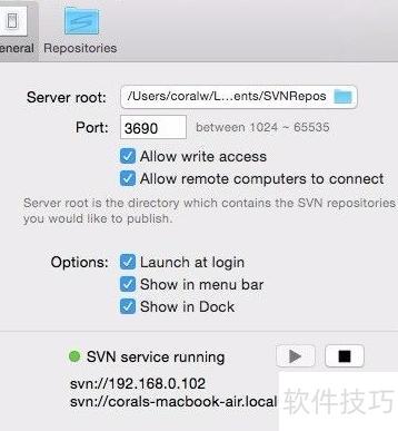 2、 启动简易SVN服务器,配置文件存储路径及服务端口。
