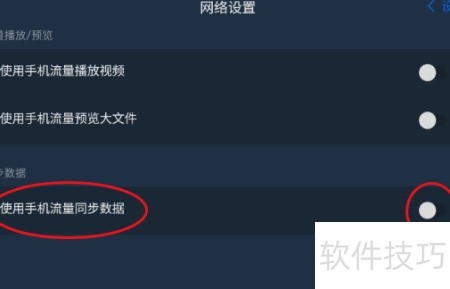 5、 进入网络设置,开启手机流量同步数据功能,点击右侧开关即可启用。
