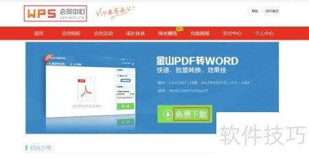1、 打开浏览器进入WPS会员中心,查找并点击PDF转Word软件的下载链接,操作所示。