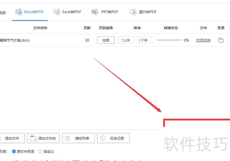 9、 将Word文档导入软件后,点击左下角输出目录,可按需求自定义设置文件保存路径,灵活选择存储位置。