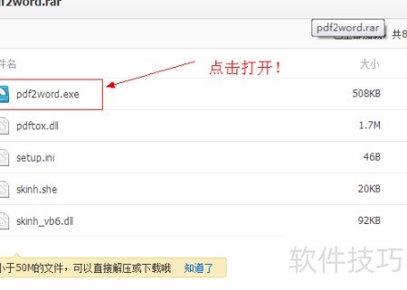 1、 上方链接可下载PDF转Word软件,无需安装并附带注册码!所示,直接点击pdf2word.exe即可运行程序。若弹出验证码提示,请输入文件内提供的注册码完成激活。