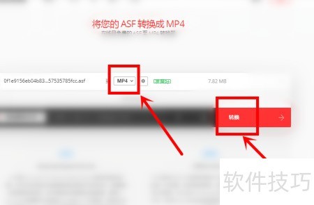 5、 将asf格式转为通用mp4,需借助转换工具完成,具体操作可参考图示。