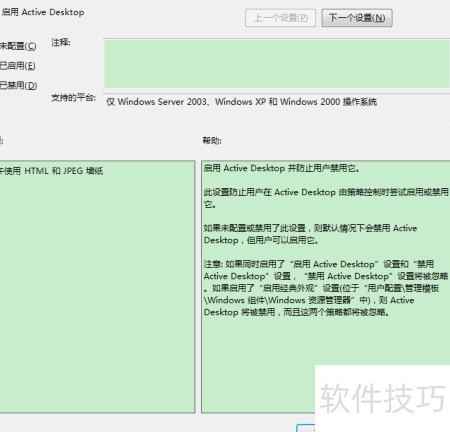 在Windows组策略编辑器中,存在启用Active Desktop设置。开启此选项后,可阻止普通用户将其关闭,从而确保该功能始终处于启用状态。