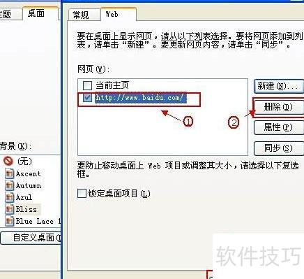 6、 进入自定义桌面设置,选择Web选项,找到当前启用的Active Desktop活动桌面并将其移除。